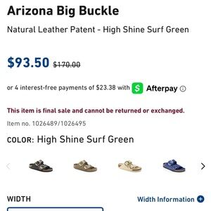 Birkenstock Arizona Big Buckle Natural Leather Patent Size 6 NEW