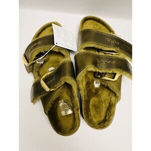 Birkenstock Arizona Big Buckle Shearling Lined Sandal OLIVE Green Size 8 New