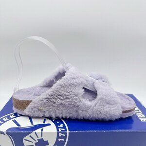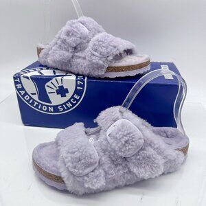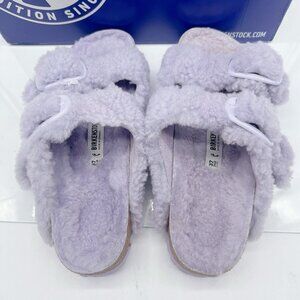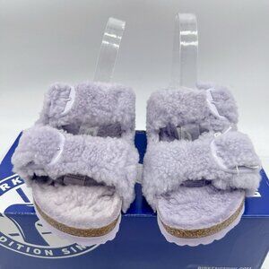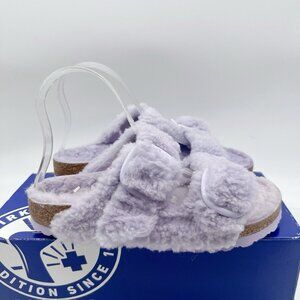 Birkenstock Arizona Big Buckle Shearling Teddy Sandals Fog Purple Womens EU 37 US 6- 6.5 N/ Medium