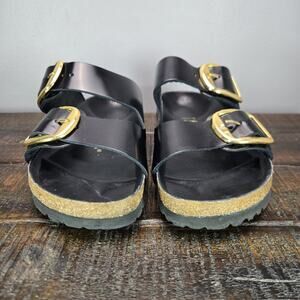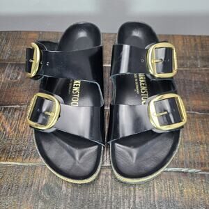 Birkenstock Arizona Big Buckle Womens Size 6 EU 37 Narrow Sandals Black Gold