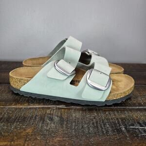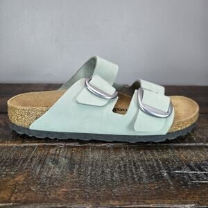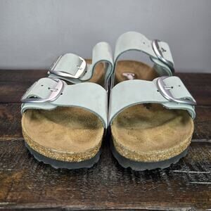 Birkenstock Arizona Big Buckle Womens Size 6 EU 37 Narrow Sandals Green Silver