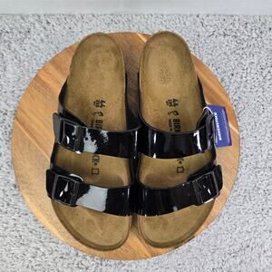 Birkenstock Arizona Birko-Flor Black Patent Leather Double Strap Sandal