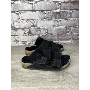 Selling Birkenstock Arizona Black Suede Fur Cork Slides Sandals Women’s Sz 37EU/6.5M US
