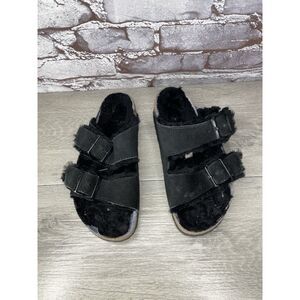Birkenstock Arizona Black Suede Fur Cork Slides Sandals Women’s Sz 37EU/6.5M US