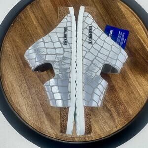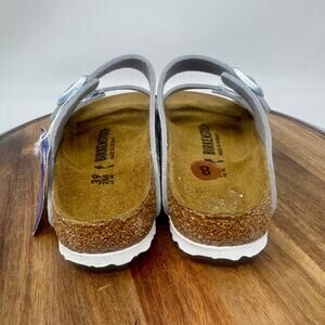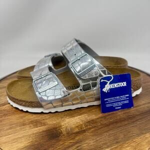 Birkenstock Arizona Gator Gleam Silver Slides Narrow Size 38 Women's 7