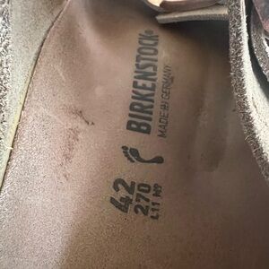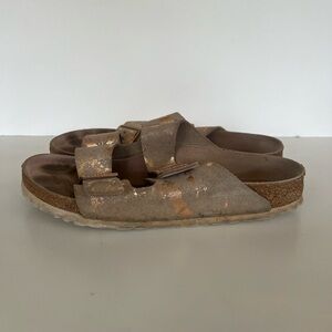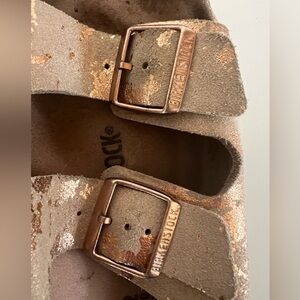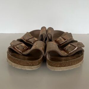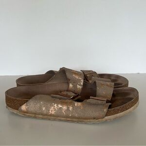 Birkenstock Arizona Khaki with Copper Splashes Big Buckle Sandals, size 42