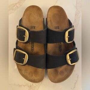 Birkenstock Arizona Leather Sandals with Oversized Gold Buckle