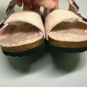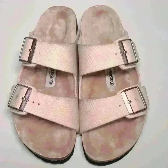 Birkenstock Arizona Microfiber Shearling Sandals Desert Dust Light Rose Sz 39