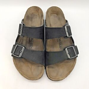 Birkenstock Arizona Nubuck Leather Sandals Unisex W 11 - M 9 Black Buckle Slide