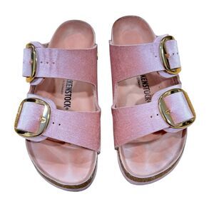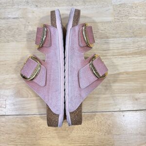 Birkenstock Arizona Pink Velvet Velour Large Gold Buckles Sandals EU41/10L/8M