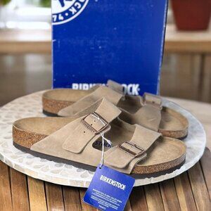 Birkenstock Arizona Regular Fit Soft Footbed Taupe Nubuck Leather Sandals Sz 42