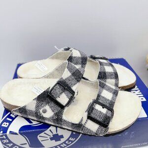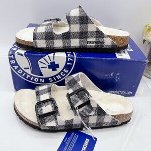 Birkenstock Arizona Rivet Shearling Sandal White Black Plaid Wool EU 37 US 6-6.5