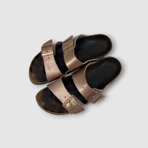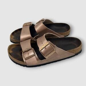 Birkenstock Arizona Sandals Copper Metallic Slip Ons Size 39