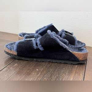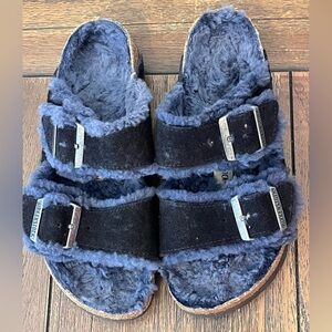 Birkenstock Arizona Shearling Blue Suede Sandals size 37 Women’s size 6
