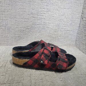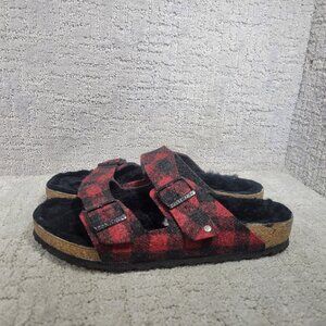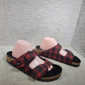 Birkenstock Arizona Shearling Mens Size EU 43 US 10 Rivet Plaid Red Slide Sandal