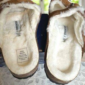 Birkenstock Arizona Shearling Mink Suede Leather Slip-On Slides Sandals