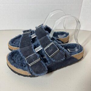 Birkenstock Arizona Shearling Sandals Navy Blue Suede Women’s 39 Fuzzy Cozy
