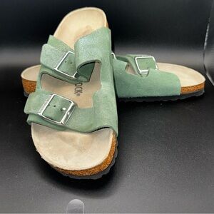Birkenstock Arizona Shimmering Thyme Suede Leather Sandals