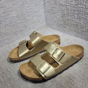 Birkenstock Arizona Size 38 L7 M5 Narrow Golden Birko-Flor Double Strap Sandals