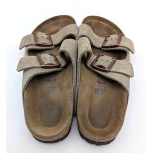 Birkenstock Arizona Soft Footbed Suede Leather Sandals Taupe Size USW7/M5 EU38