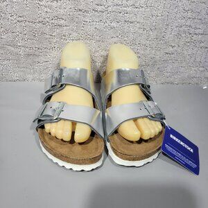 Birkenstock Arizona Soft Womens Size US 5 Silver Finish Birko-Flor Slide Sandal