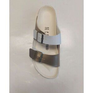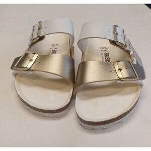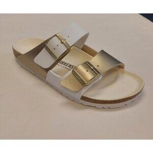 Birkenstock Arizona Split Birko-Flor Womens 10 Mens 8 Sandals Gold White EU 41