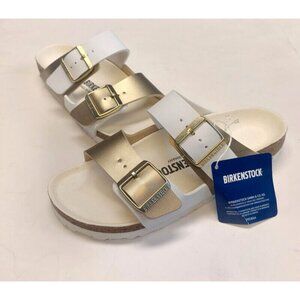 Birkenstock Arizona Split Birko-Flor Women's Sz 6 Men's 4 Sandals Gold White EU 37