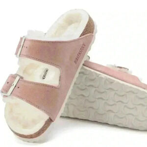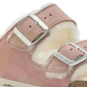 The legendary two-strap design from BIRKENSTOCK - the Arizona. Iconic style with the signature comfort of the BIRKENSTOCK footbed. Featured in genuine high quality suede - and is now available in an extra cozy version thanks to a soft, genuine shearling lining on the anatomically formed cork-latex footbed and straps.