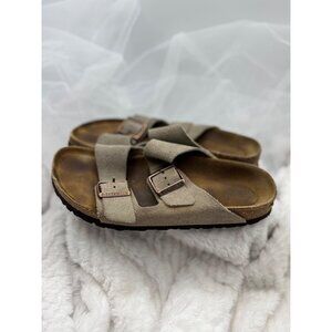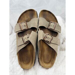 Birkenstock Arizona Suede Leather Sandals Tan Dual Strap Slip-On Footbed Size 39