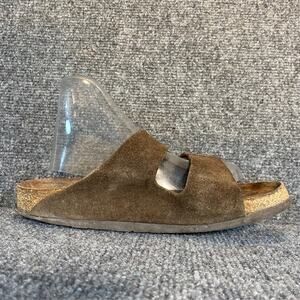 Birkenstock Arizona Suede Sandals Size 34 Brown Comfort Shoes Size: **Note that the size is not legible on the shoe. Measurement heel to toe insole (inside edges) is 8.75"=22.25cm= Kids' Birkenstock Size 3-3.5, Women's 4. Outsole is 10". PLEASE take measurements of your foot or current Birkenstocks prior to ordering. Fair condition with signs of typical wear.