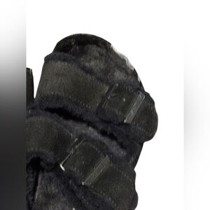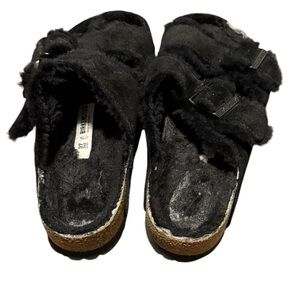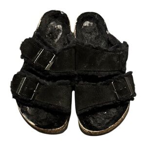 Birkenstock Arizona Two Strap Black Buckle Shearling Sandals Size 37