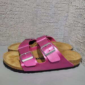 Birkenstock Arizona Unisex Size US L9 M7 Metallic Pink Birko-Flor Slip On Sandal