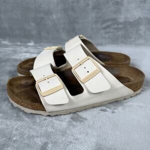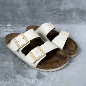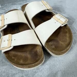 Birkenstock Arizona White Two-Strap Woven Sandals Womens 37 Sz 6-6.5 Leather