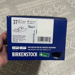 Birkenstock Arizona Rivet Logo Sandal Textile Vegan Canvas Eggshell US 6/ EU 37. Authentic- brand new in box. Never worn! Ordered the wrong size