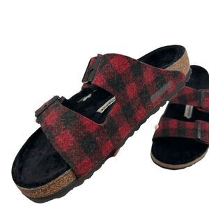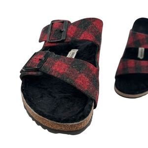 Birkenstock Arizona red plaid sheep lined size 41 regular width. Excellent condition with box. See photos for details