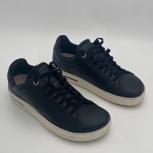 Sleek black leather sneakers by Birkenstock. Ideal for casual wear. Comfortable and stylish.