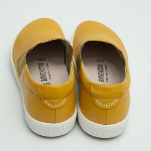 Birkenstock Barrie Slip-On Sneakers in Lemon leather, size EU 36 (US Women’s 5 / Men’s 3). These casual slip-ons feature a smooth natural leather upper with elastic side panels for easy wear, a natural leather and cork insole for comfort, and a durable rubber sole. From Birkenstock’s modern sneaker line, they combine everyday style with the brand’s signature support. Narrow fit. Original box included.