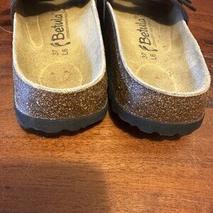 Birkenstock Betula Gold Silver Soft Footbed Sandals 2 Side Strap Women 37 6-6.5
