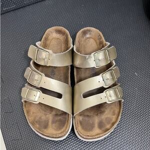 Birkenstock Betula Sandals Gold Three Strap Slides Leather Size 37 US 6