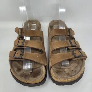 Birkenstock Betula Sandals Womens EU40 US6 Brown Nubuck Triple Straps Buckles