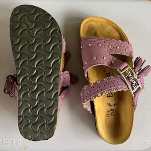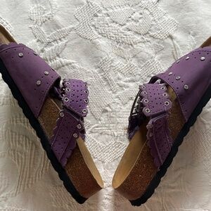 Birkenstock Betula, size 36, wide fit purple sandals with rhinestones and tassels. Very lightly worn, almost like new condition
