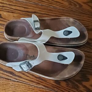 Birkenstock Betula Gizeh white sandals sz 38 in good used condition with some wear as shown in the pictures.