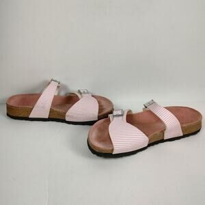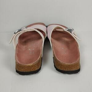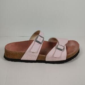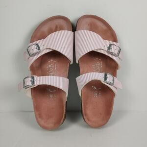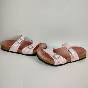 Birkenstock Birkis Aziza pink stripe causal glam strap sandals womens 6-6.5 (37)