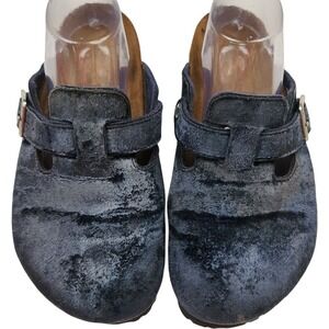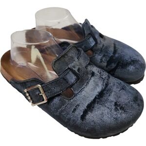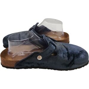 Birkenstock Birki's Boston Clogs Navy Blue Velvet Rhinestone Buckles Women's 9