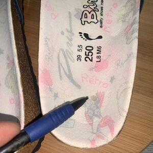 The sandal is perfect for summer and comes from the Birkenstock Birki product line. It is a slide type sandal that is suitable for women and has a US shoe size of ladies 8 / mens 6 and an EU shoe size of 39. The shoe has a cork insole material and a classic theme.