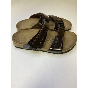 Birkenstock Birkis Madura Brown Patent Leather Sandals Velcro US 5.5-6 EU 36