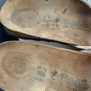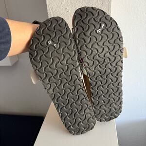 Stylish Birkenstock sandals with a vibrant coral print. Features a comfortable footbed and adjustable strap.