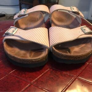 Birkenstock Birki's Sydney Double Strap Sandals PINK and White Pin Stripped