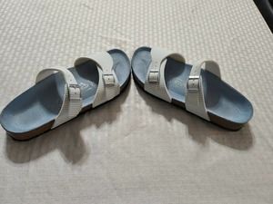 Birkenstock Birki's Womens Sydney Baby Blue & White Striped Sandals US 7 EU 38