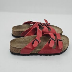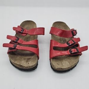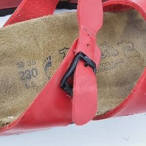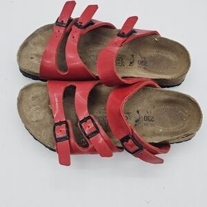Birkenstock Birko-Flor Havanna Red Patent Leather 3 Strap Sandal Size 36